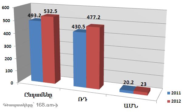 ՀՀ բանկային համակարգի միջոցով ֆիզիկական անձանց կողմից ոչ առևտրային նպատակով կատարված փոխանցումները 2011-2012թթ. հունվար-հունիսին, մլն դոլար