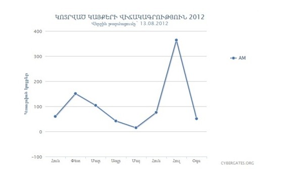 Ըստ կոտրված կայքերի վիճակագրության՝ 2012թ. ընթացքում .am տիրույթում կայքէջերն ամենաշատը կոտրվել են հուլիս ամսին` թվով 364 կայքեր, իսկ այս տարվա օգոստոսից մինչ օրս կոտրվել է 50 կայքէջ: ՍԱՅԲԵՐ ԳԵՅԹՍ կազմակերպության վիճակագրական տվյալների համաձայն՝ 2012թ., ընդհանուր առմամբ, .am տիրույթում կոտրվել են 862 ինտերնետային կայքէջեր: