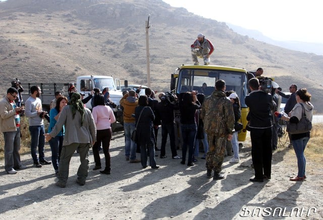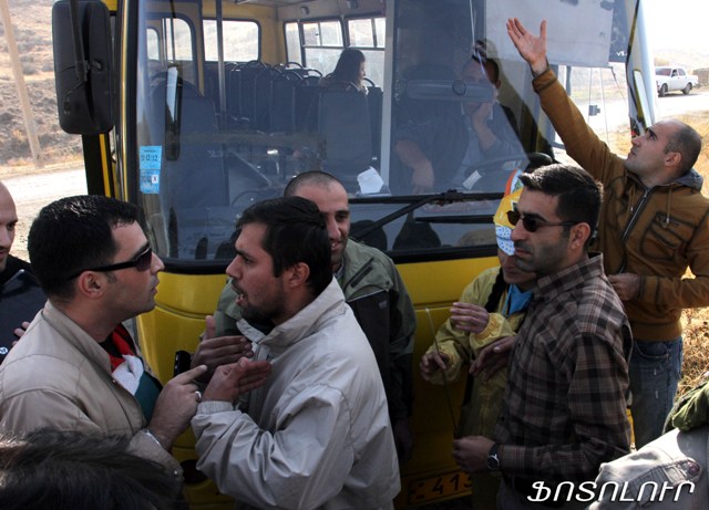 «Ա1+»-ի փոխանցմամբ` ակտիվիստները գրեթե հայտնվել էին ավտոբուսի անիվների տակ, իսկ նրանցից մեկը բարձրացել էր ավտոբուսի տանիքին՝ խոչընդոտելով ավտոբուսի շարժը։