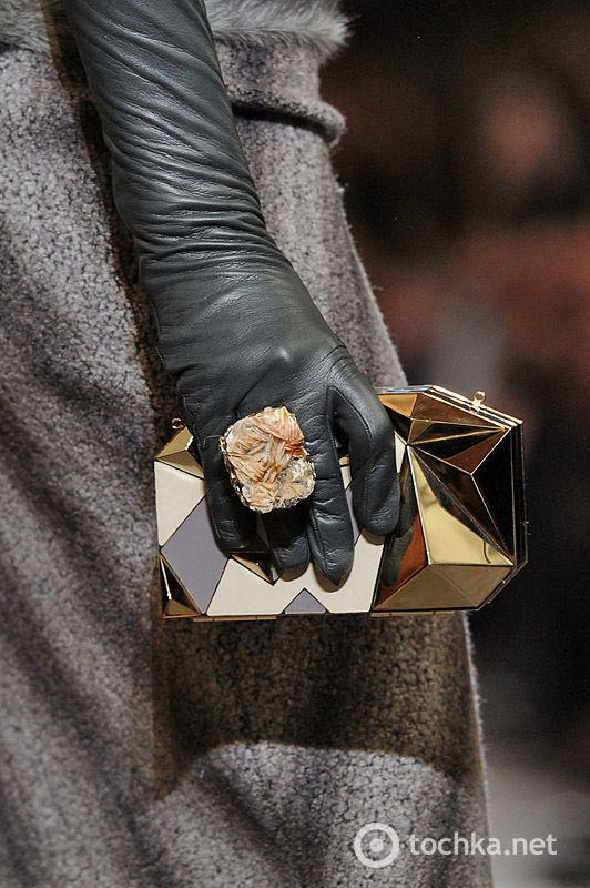 Missoni-ն երկար կաշվե ձեռնոցների հետ համադրել էր խոշոր աքսեսուարները՝ մատանի, թևնոց: