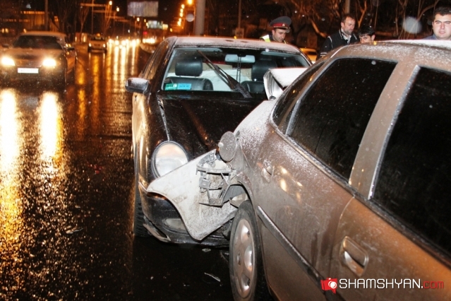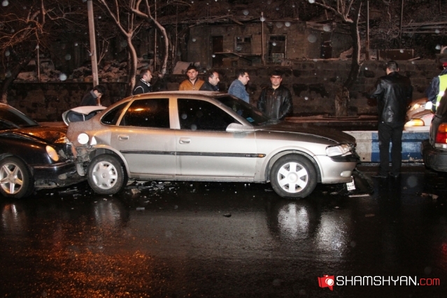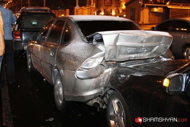 Այսօր՝ մարտի 5-ին, շղթայական ավտովթար է տեղի ունեցել Երևանում: Ժամը 19:30-ի սահմաններում Երևանի Մյասնիկյան պողոտայում՝ Արքայաձոր ռեստորանային համալիրի դիմաց, բախվել են Հրազդան քաղաքի բնակիչ 34-ամյա Էդգար Հակոբյանի վարած «Մերսեդես» մակնիշի՝ 20 ԼՍ 055 համարանիշի, Երևանի բնակիչ 23-ամյա Ասքանազ Սահակյանի վարած «Օպել» մակնիշի՝ 15 ՍՍ 627 համարանիշի, Երևանի բնակիչ 56-ամյա Իվան Տունյանի վարած «Սուբարո» մակնիշի՝ 07 ՍՏ 975 համարանիշի և 30-ամյա Տիգրան Ստեփանյանի վարած «Տոյոտա» մակնիշի՝ 43 LA 333 համարանիշի ավտոմեքենաները: Այս մասին հաղորդում է shamshyan.com կայքը: