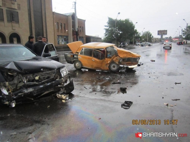 Գյումրիում բախվել են Mercedes-ն ու «06»-ը. կան վիրավորներ (լուսանկարներ)