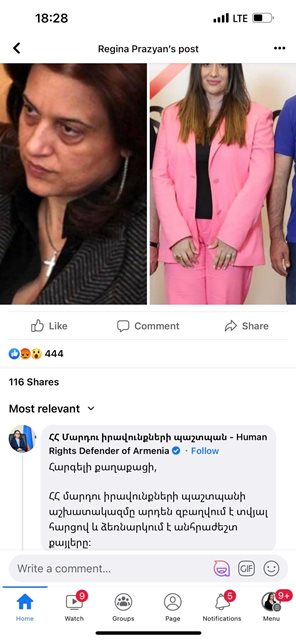Զավեշտալին այն չէ, որ Ռեգինա Պռազյան անունով տխրահռչակ ֆեյքն ապատեղեկատվություններ ու զրպարտություններ է տարածում, այլ այն, որ նրա հետ համագործակցում է ՀՀ մարդու իրավունքների պաշտպանը:
