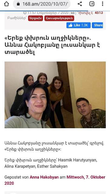 Ավելի ուշ՝ հոկտեմբերի 7-ին, Աննա Հակոբյանը «Երեք փխրուն աղջիկները» վերտառությամբ լուսանկար է հրապարակում` թվագրված և նշված 5.10.2020թ., Ստեփանակերտ, որտեղ երևում է նաև Փաշինյանի տղան՝ Աշոտը: