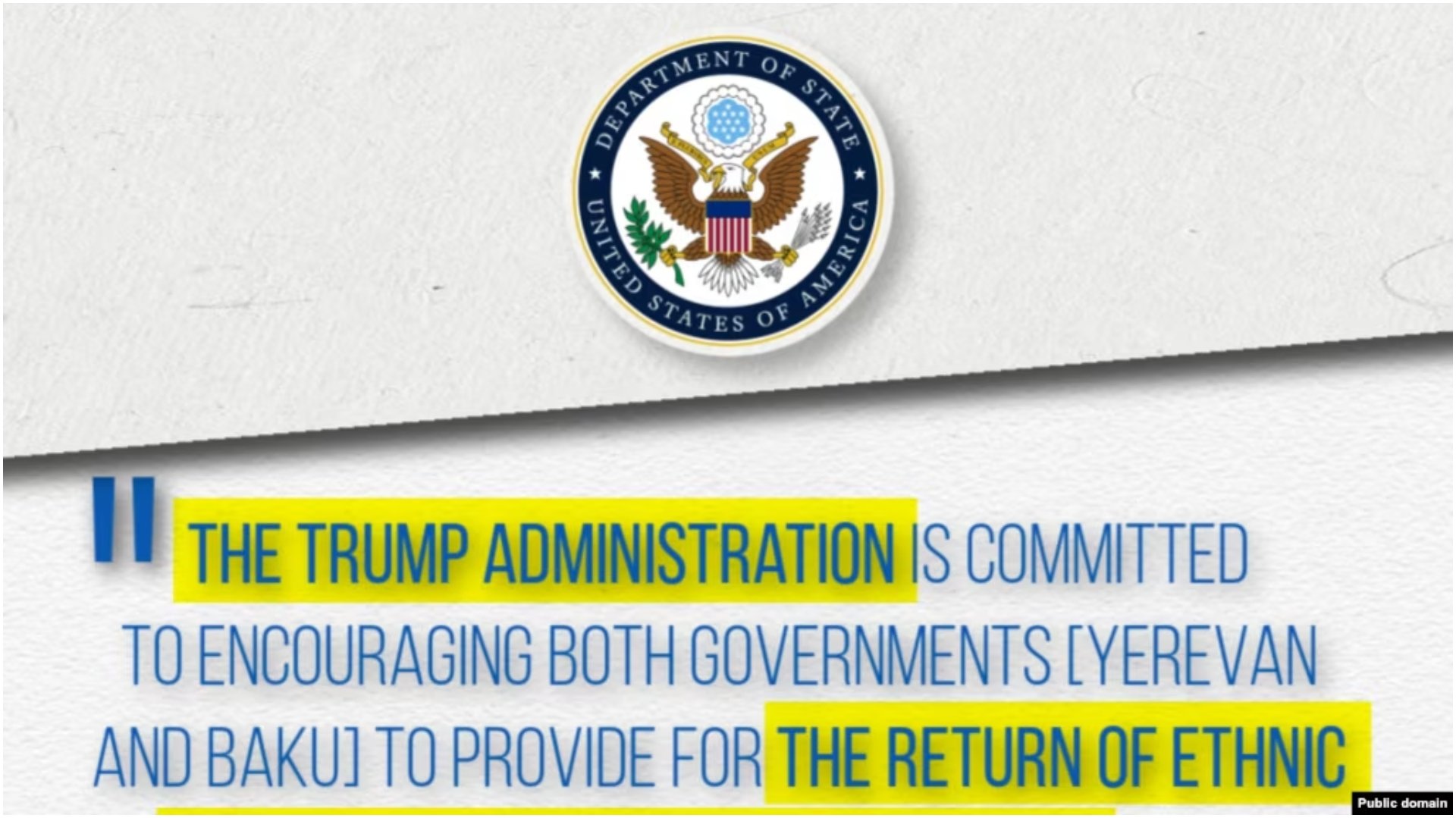 Հայ դատի հանձնախումբը հայտարարել է, որ Թրամփ-Վանսի վարչակազմը, անցած շաբաթ աննախադեպ քայլ կատարելով, հայտարարել է, որ Միացյալ Նահանգները ակտիվորեն խրախուսում է Երևանին և Բաքվին ապահովելու «էթնիկ հայերի վերադարձը Լեռնային Ղարաբաղ»: