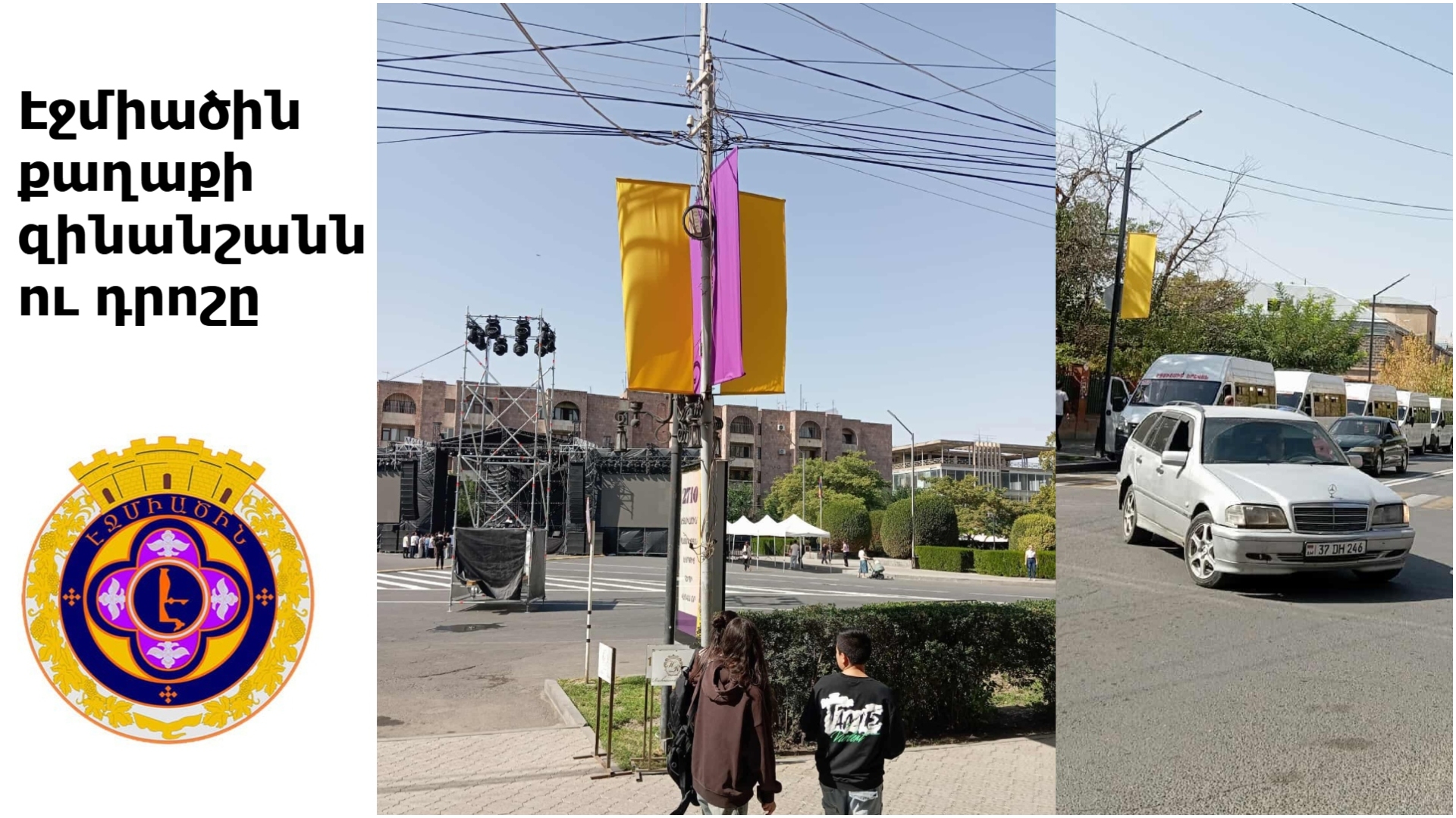Այսօր Էջմիածին քաղաքի տոնն է, բայց քաղաքի իշխանությունները որոշել են տոնական օրը դիմավորել քաղաքական էքսպերիմենտով՝ Էջմիածինը զարդարելով ոչ թե Էջմիածնի խորհրդանիշ դրոշով, այլ դրոշի ու զինանշանի գույները հիշեցնող առանձին կտորներով։ Սա, հավանաբար, զուտ Նիկոլ Փաշինյանին դուր գալու համար․ չէ՞ որ այդ դրոշի վրա քաղաքի զինանշանն է, որի տարբեր էլեմենտներ Մայր Աթոռի խորհրդանշական հիշեցումն ունեն՝ ինչպես, օրինակ, «դրոշի դեղին գույնը՝ ծիրանագույնը, խորհրդանշում է արքայական ծիրանին, քանի որ Էջմիածինը եղել է արքայանիստ քաղաք, իսկ մանուշակագույնը խորհրդանշում է քաղաքի կաթողիկոսանիստ լինելը»: