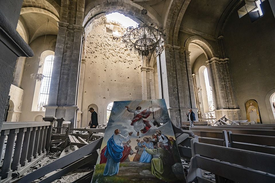 Լուսանկարում պատկերված սրբապատկերը հրաշքով փրկվել է ռմբակոծությունից և այժմ պահվում է Երևանում՝ որպես ոչ միայն հավատքի, այլև դիմադրության խորհրդանիշ։