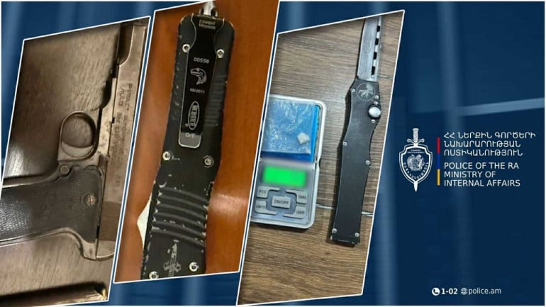 Քրեական ոստիկանության ծանր հանցագործությունների դեմ պայքարի վարչության քրեական միջավայրի հակազդման բաժնում ստացվել էր օպերատիվ տեղեկություն, որ 32-ամյա մի տղամարդ և իր ընկերները Երևանի տարածքում շրջում են մի քանի մեքենայով, նաև` ապօրինի պահում ու կրում են հրազեն, սառը զենք և թմրամիջոց. հայտնել է ՆԳՆ ոստիկանությունը: