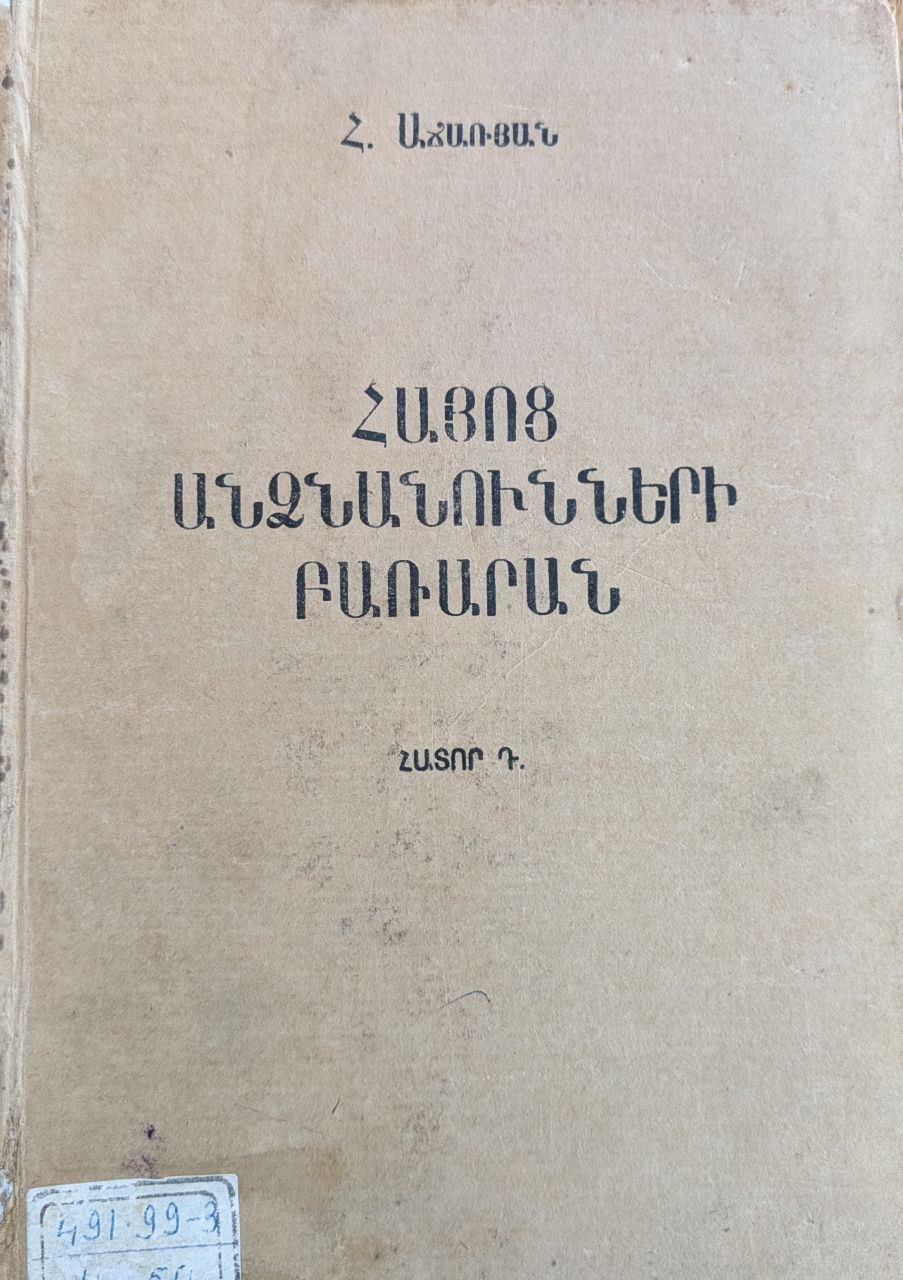 Հրաչյա Աճառյանի «Հայոց անձնանունների բառարան»-ը, որը բաղկացած է 5 հատորից, հայ իրականության մեջ ամենաբացառիկ գիտական աշխատություններից մեկն է: Այն հայ մատենագրության մեջ հիշատակված անձնանունների մասին է: