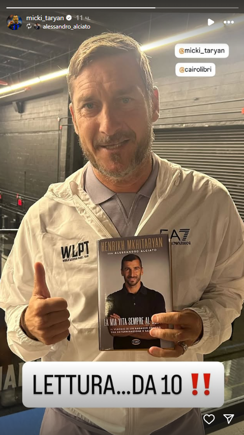 Իտալիայի ազգային հավաքականի և «Ռոմայի» լեգենդ Ֆրանչեսկո Տոտին լուսանկարվել է Հայաստանի հավաքականի նախկին ֆուտբոլիստ Հենրիխ Մխիթարյանի ինքնակենսագրական գրքով:
