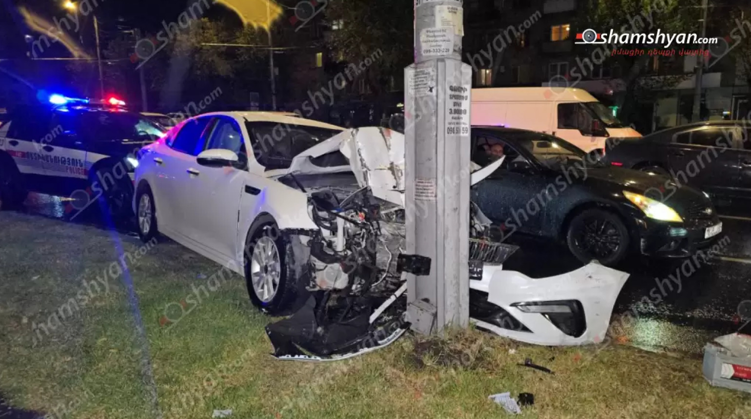 Երևանում «Kia»-ն բախվել է երկաթե էլեկտրասյանը. կան տուժածներ