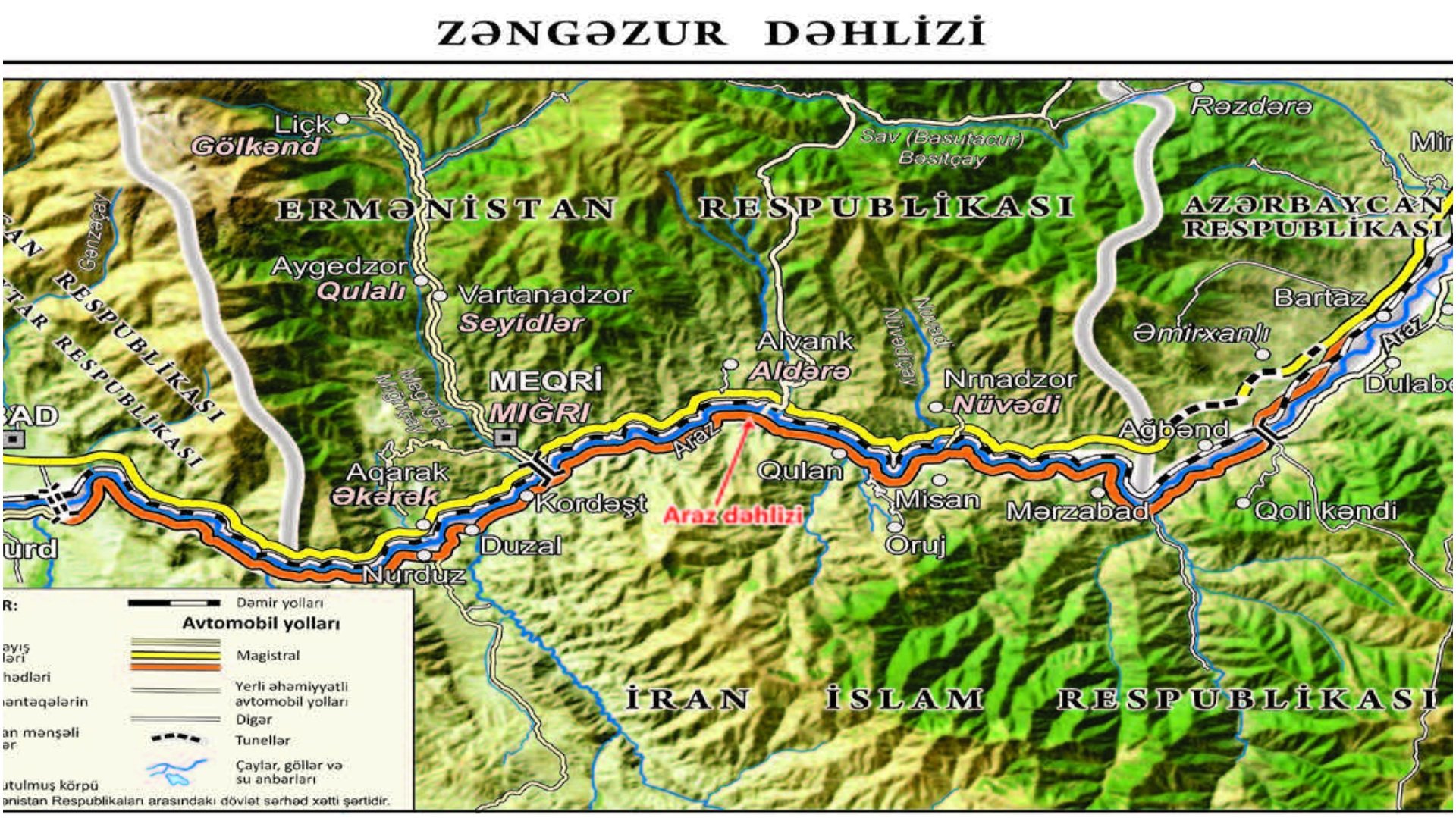 Քարտեզում նաև պատկերված է Արազի միջանցքը, որն անցնում է Իրանով։