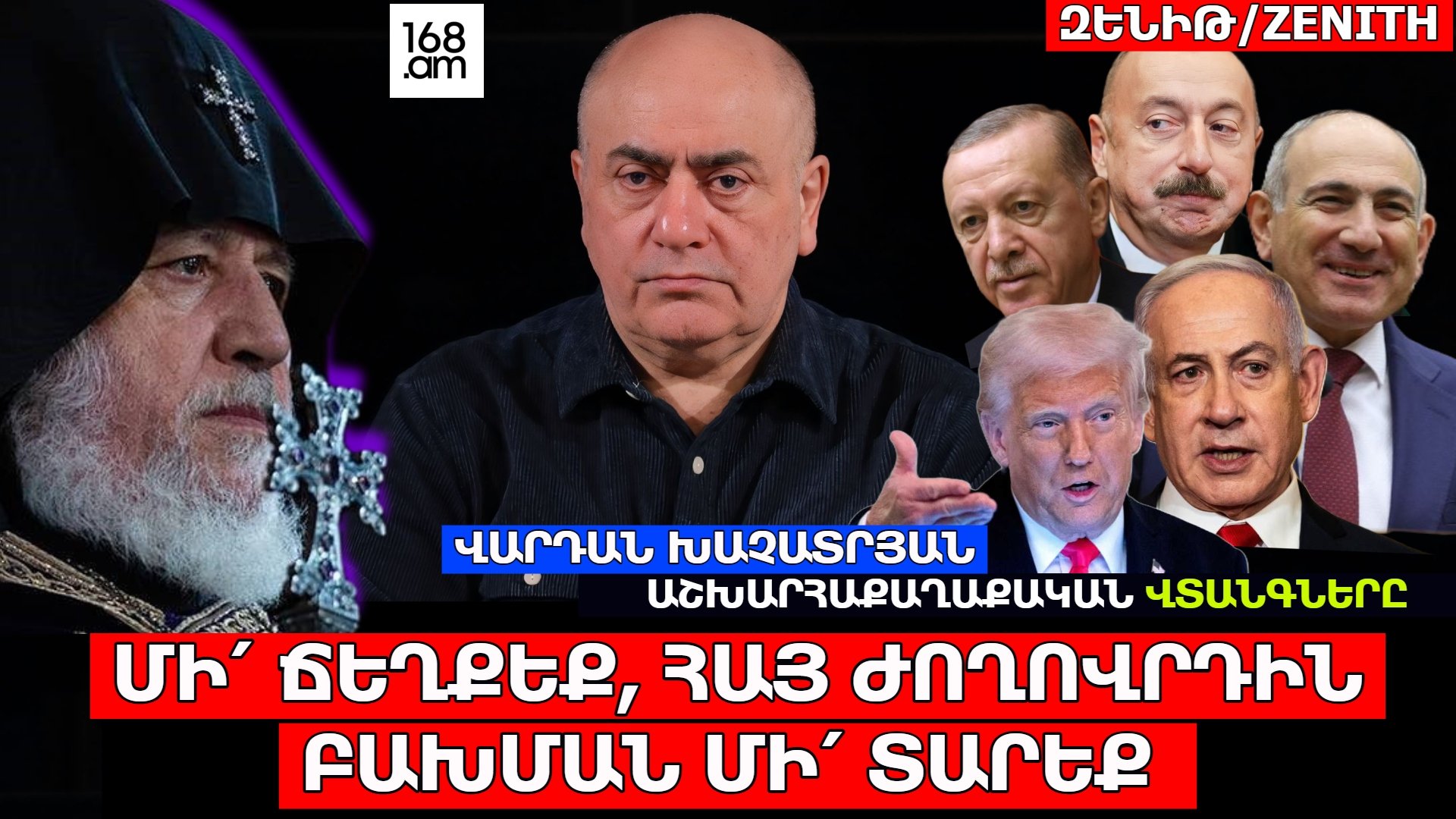 Կրոնագետ, փիլիսոփա Վարդան Խաչատրյանը 168TV-ի «ԶԵՆԻԹ/ZENITH» հաղորդման շրջանակում անդրադարձել է աշխարհաքաղաքական թատերաբեմի արդի առանձնահատկություններին, նոր վերադասավորումներին և այդ համատեքստում Հայաստանի առջև կանգնած նոր մարտահրավերներին: