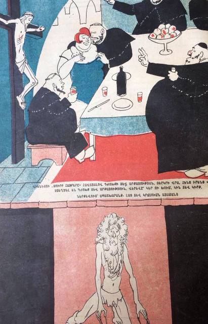 Ցավալիորեն նույն պատկերը տեսնում ենք մոտ 100 տարի անց, հիմա, մեր օրերում, սակայն այս դեպքում հակակրոնական և հակաեկեղեցական քարոզն իրականացնում է «հայը»: