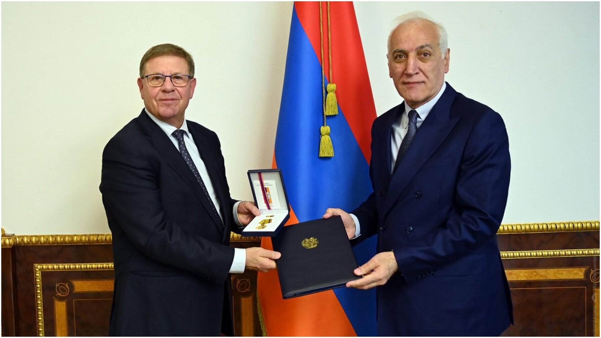 ՀՀ նախագահի աշխատակազմից հայտնում են, որ բարձր տեխնոլոգիական արդյունաբերության զարգացման գործում ներդրած ավանդի և բարեգործական անխոնջ գործունեության համար Վահագն Խաչատուրյանն Ադամ Ալեքսան Ալեքսանի Կաբլանյանին պարգևատրել է Երախտագիտության մեդալով։