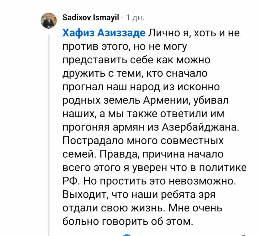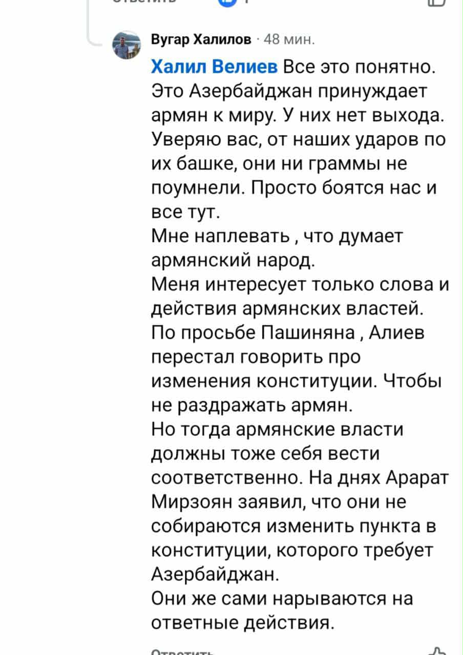 Այս չլուծված հարցերի պարագայում ինչպե՞ս է Նիկոլ Փաշինյանը պատկերացնում խաղաղությունը և երկու ժողովուրդների խաղաղ համակեցությունը և շփումները, երբ անգամ հաղթած Ադրբեջանը սա դժվար է պատկերացնում, ինչի մասին խոսվում է ադրբեջանական հոդվածներում, շարքային ադրբեջանցիների գրառումներում: