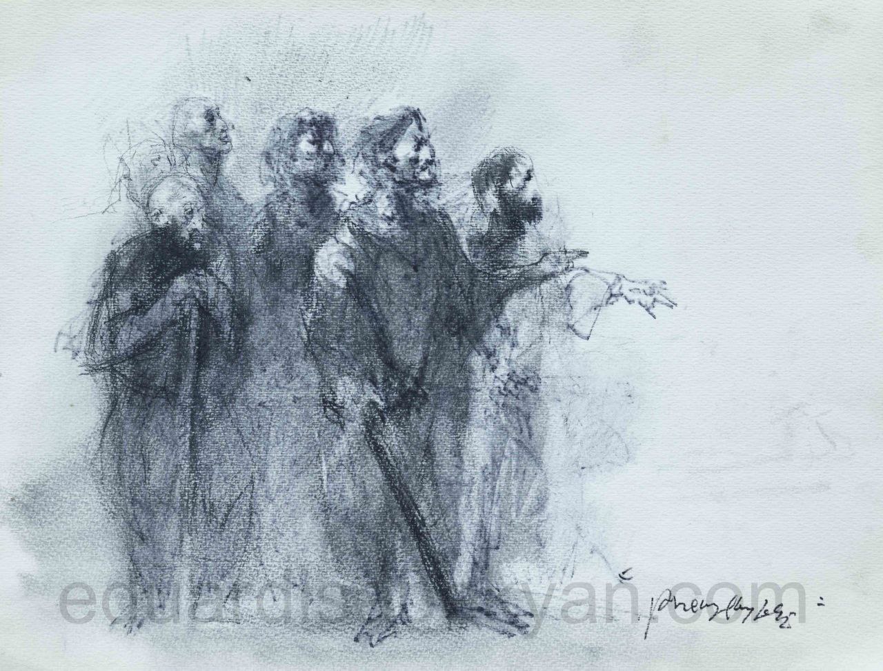«Եւ շարք շանց, և գումար գողոց, և գունդք գայլոց և դասք դիւաց, և ազինք աւազակաց և կոյտք կերչաց, և բոյլք բարբարոսաց և երամք թունաւոր օձից և փառք մարդադէմ գազանաց և կաճառք, հախարդասարաս աղանդաւորաց»: (Նույն տեղում, էջ 464):