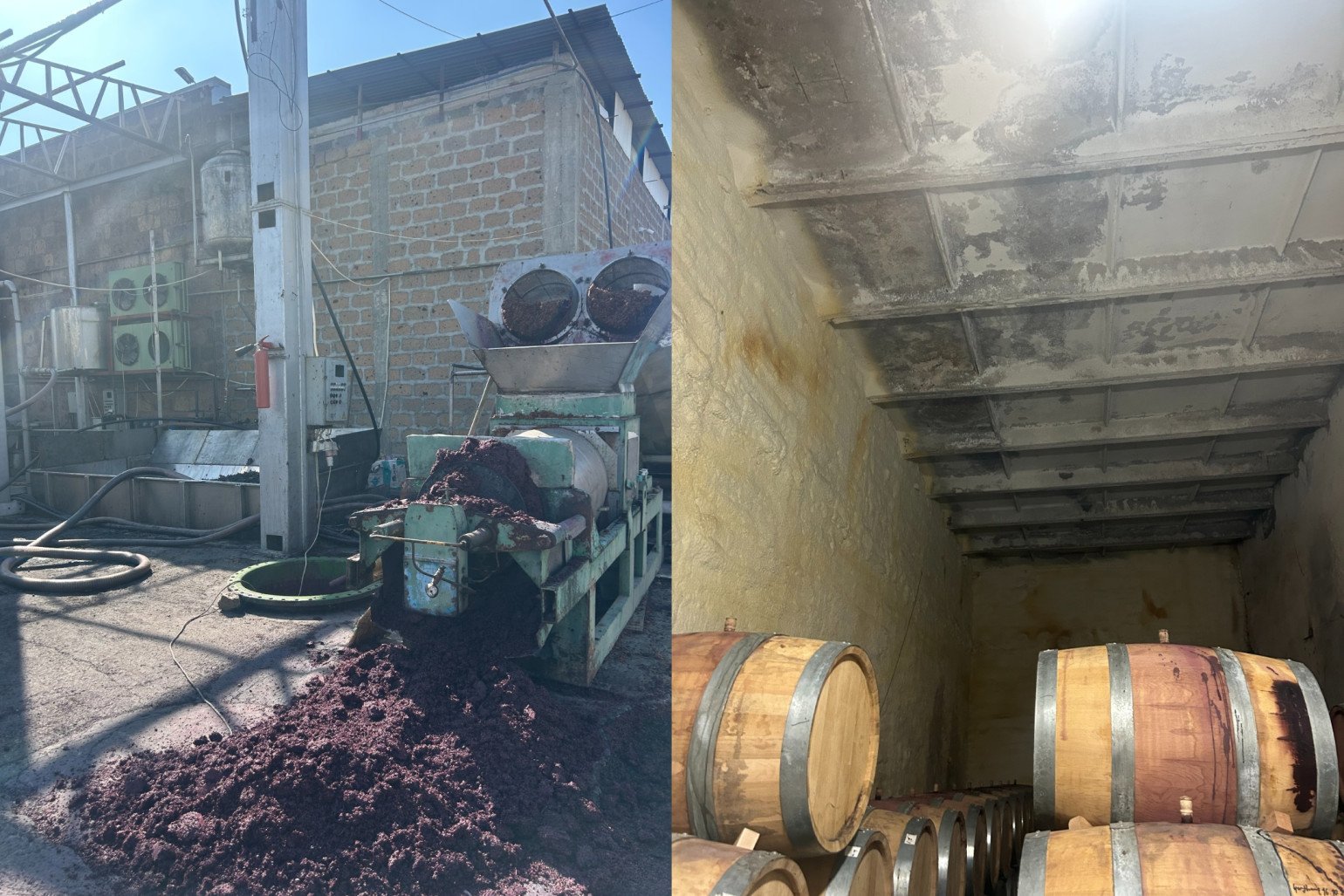 - գինու հասունացման սենյակի, պատրաստի արտադրանքի պահեստային հատվածի առաստաղները վնասված են եղել, պատերի մակերևույթները