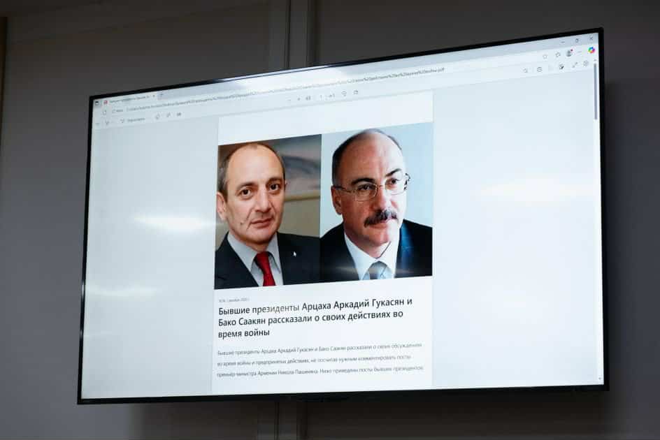 Հոկտեմբերի 30-ին Բաքվի «դատական» նիստին անդրադարձ է կատարվել 2020թ․ օգոստոսի 28-ին Սարդարապատում հուլիսյան մարտերի մասնակիցների պարգևատրման արարողությանը, որին մասնակցել են նաև Արցախի իշխանությունները, մասնավորապես, Արցախի այդ ժամանակվա նախագահ Արայիկ Հարությունյանը: