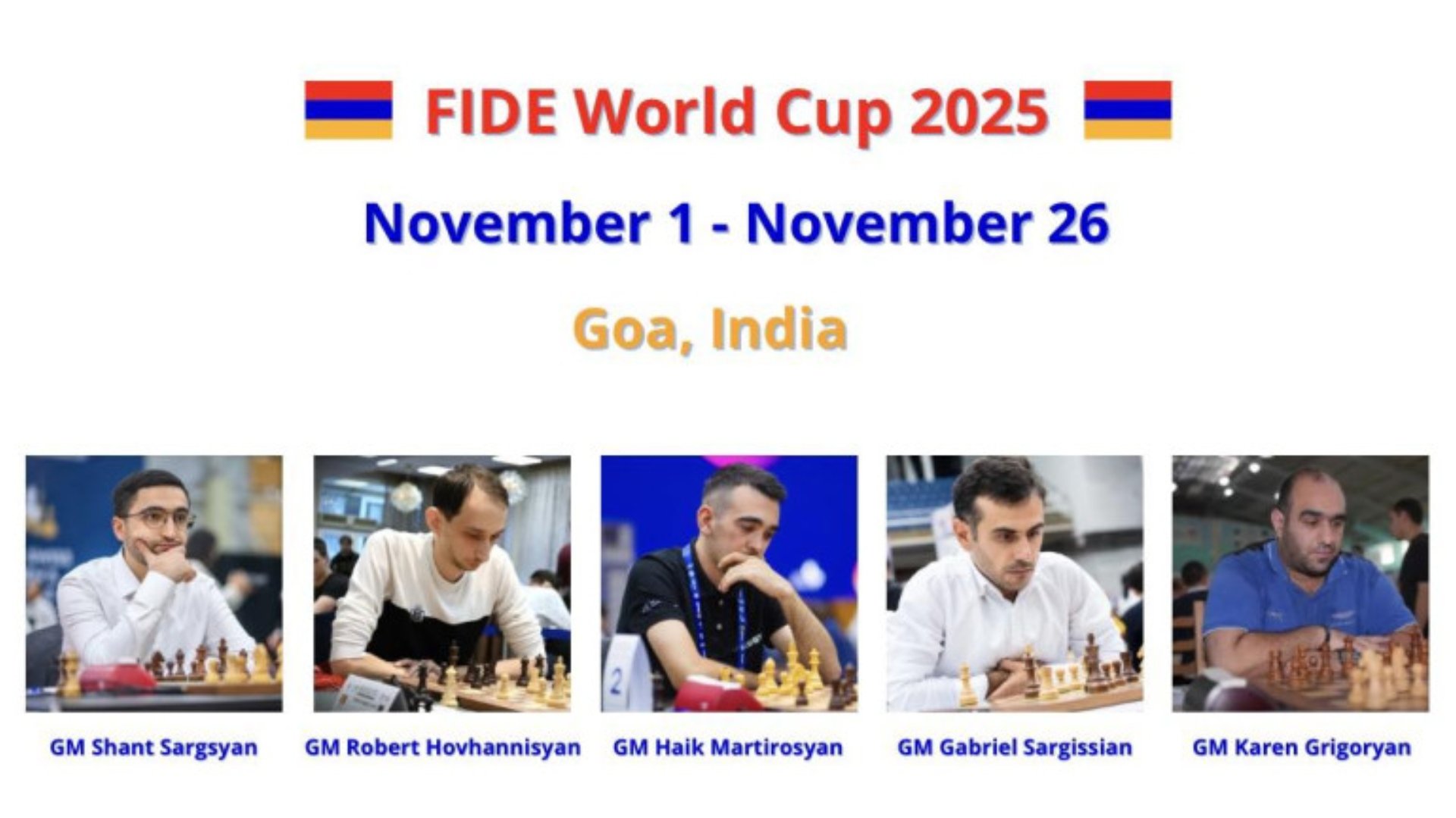 Հայ գրոսմայստերներ Շանթ Սարգսյանը, Ռոբերտ Հովհաննիսյանը, Հայկ Մարտիրոսյանը, Գաբրիել Սարգսյանը և Կարեն Գրիգորյանը կմասնակցեն 2025 թվականի ՖԻԴԵ-ի աշխարհի գավաթին, որը տեղի կունենա նոյեմբերի 1-26-ը Հնդկաստանի Գոա նահանգում: Այս մասին հայտնում է Հայաստանի շախմատային ֆեդերացիան: