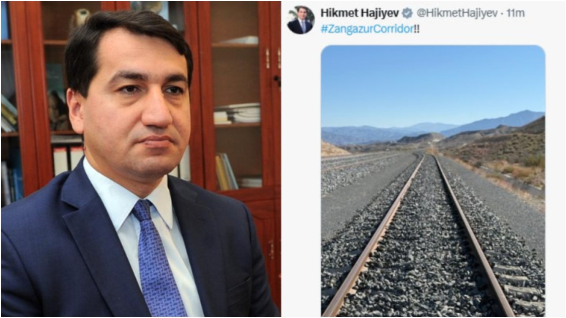 «Զանգեզուրի միջանցք»․ այդպիսի մակագրությամբ է Ադրբեջանի նախագահ Իլհամ Ալիևի օգնական Հիքմեթ Հաջիևը գրառում արել «X»-ում և հրապարակել լուսանկար։