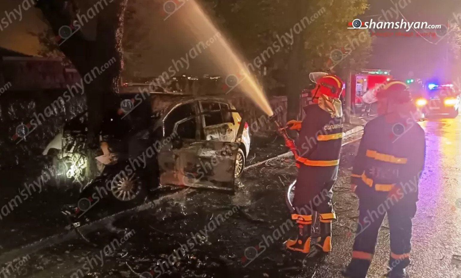 Երևանում «Nissan»-ը բախվել է ծառին և բռնկվել. կա տուժած