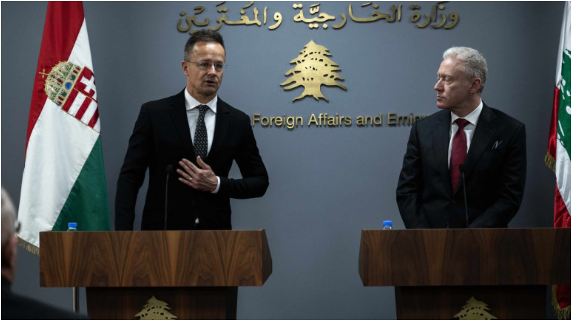 Սիյարտոն իր սոցցանցերի գրառմանը կցել է Լիբանանի ԱԳ նախարար Յուսեֆ Ռաջիի հետ լուսանկար։ Գրառման համաձայն՝ Սիյարտոն Ռաջիին ասել է, որ Մերձավոր Արևելքում խաղաղությունը համապատասխանում է Հունգարիայի ազգային անվտանգության շահերին, իսկ Լիբանանի կայունությունը դրան հասնելու բանալին է։