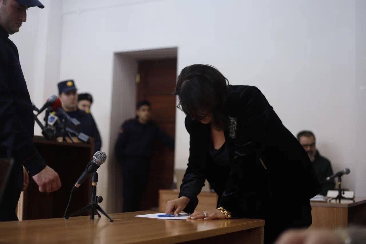 Լուսանկարում Սաթիկ Սեյրանյանը դատարանում իր ստորագրությամբ երաշխավորում է իմ կալանքը այլ խափանման միջոցով փոխելու համար»: