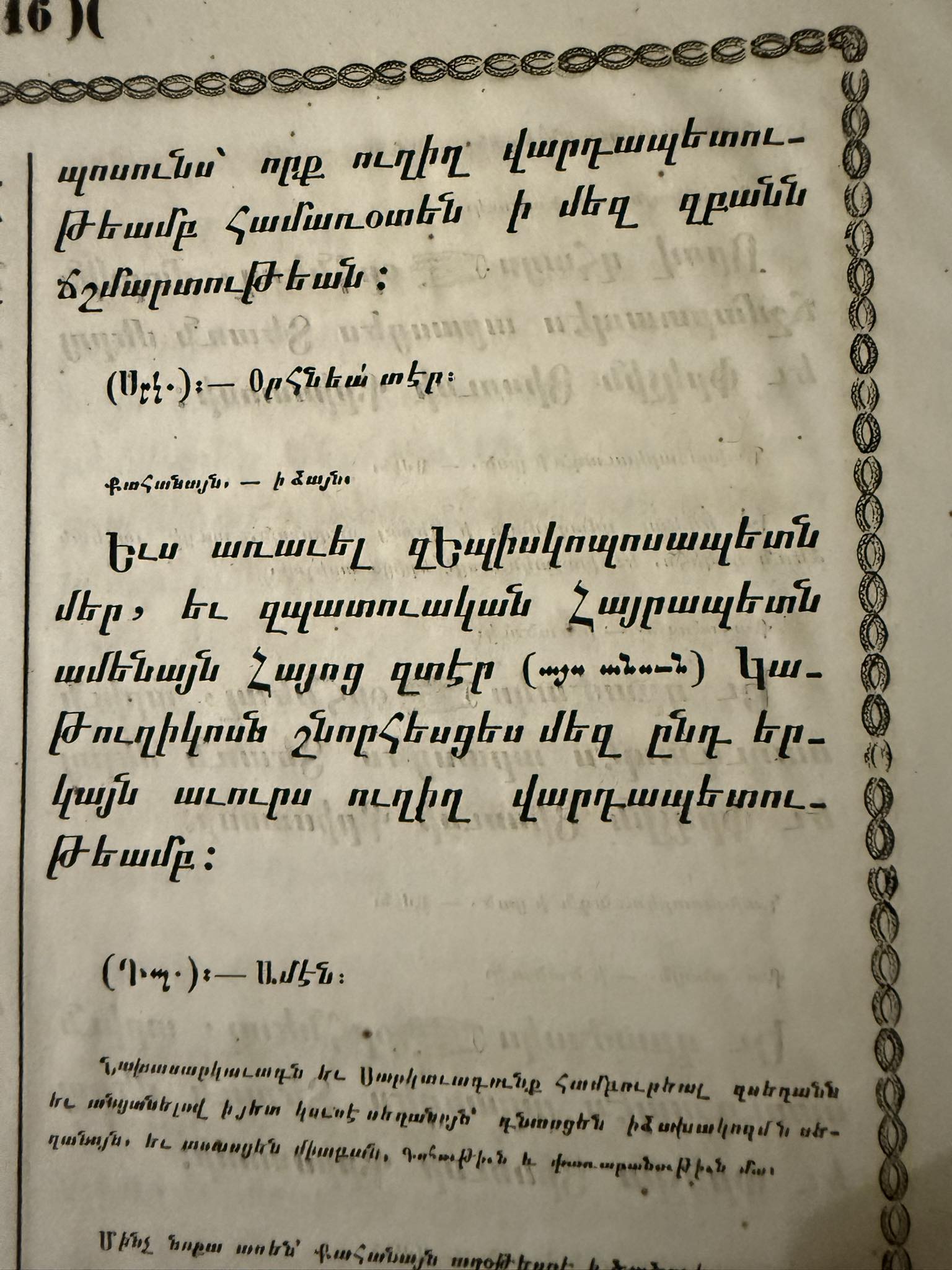 Պատարագիչ քահանան պարտավո՛ր է հնչեցնել Վեհափառի անունը. Տղամա՛րդ եղեք, ափսո’ս եք, ձեզ մի’ վնասեք. Տեր Փառեն