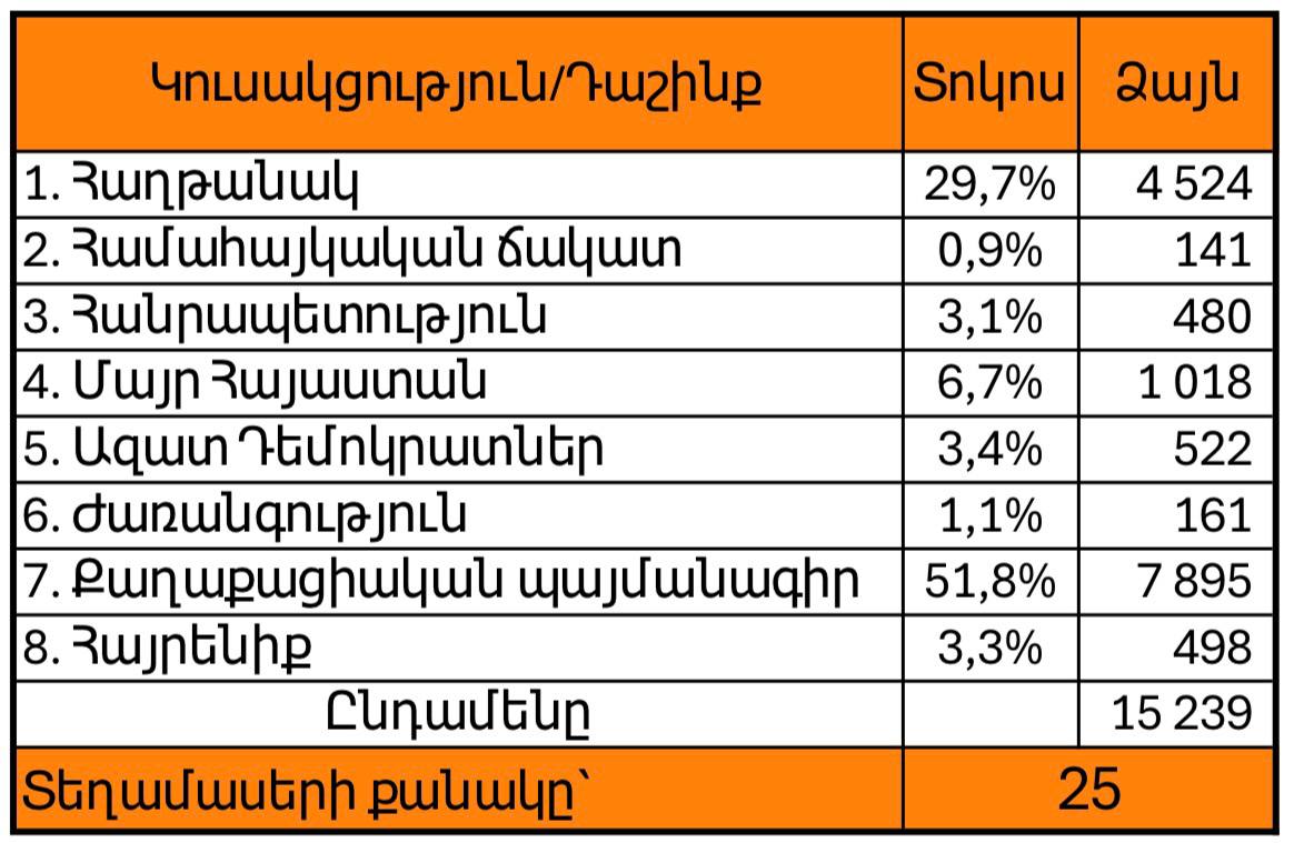 Նախնական արդյունքները՝ 25 տեղամասերի հաշվարկով։