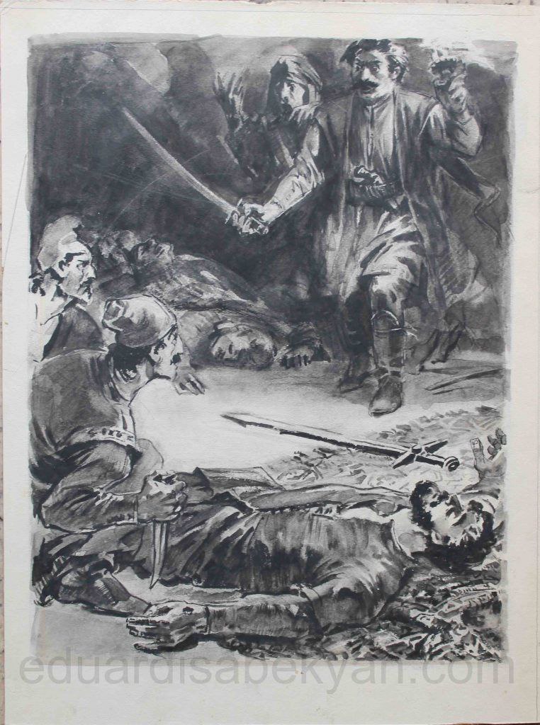 Որքա՜ն անփառունակ վերջ էր տալիս այդ հերոսը իր ամբողջ գործունեությանը: Սոսկալի տեսարանի ազդեցության տակ նրա մեջ վառվում է կրոնական կրակը: Նա նոր միայն զգում է, որ ինքը քահանա է, իսկ քահանային վայել չէ այդքան արյուն թափելը: Ու դառնում է ինքն իրեն դատապարտող մի ողորմելի հանցավոր: Թողնում է երկիրը, ուր այնքան մեծ գործեր էր կատարել, վերցնում է օսմանցիներից ծանր, սոսկալի գնով առած իր գլուխը ու ճանապարհվում Երուսաղեմ՝ իր մեղքերի թողությունը ստանալու համար»: (Նույն տեղում, էջ 484-485):