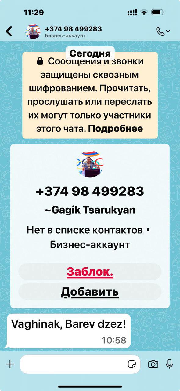 Իվետա Տոնոյանը ֆեյսբուքյան իր էջում զգուշացնում է, որ օրերս Watsapp հավելվածում Գագիկ Ծառուկյանի անունով օգտահաշիվ է բացվել, որից հաղորդագրություններ են ուղարկվում տարբեր մարդկանց։