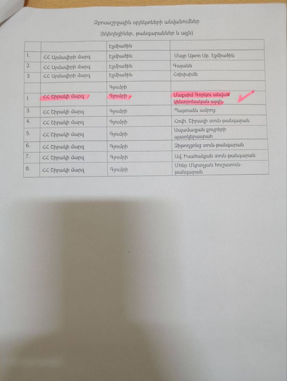 Սխալով, որն արվել է վերջինների օրոք, այժմ զբաղվելու է քաղաքապետարանը։ Անվանումների ցանկը, փաստորեն, տվել է Շիրակի մարզպետը, տվել է սխալով, սխալն էլ կրկնել են Սարիկ Մինասյանը և քաղաքապետարանի աշխատակազմը»։