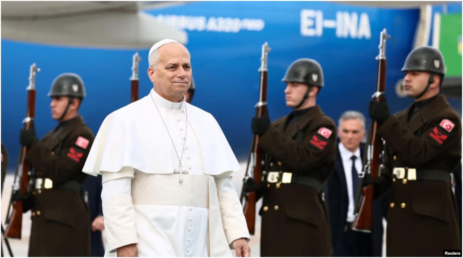 Հռոմի պապ Լեո 14-րդ-ը այսօր կեսօրին ժամանել է Անկարա։ Թուրքիայի մայրաքաղաքի օդանավակայանում Հռոմի կաթոլիկ եկեղեցու հովվապետին դիմավորել են կառավարության անդամները։