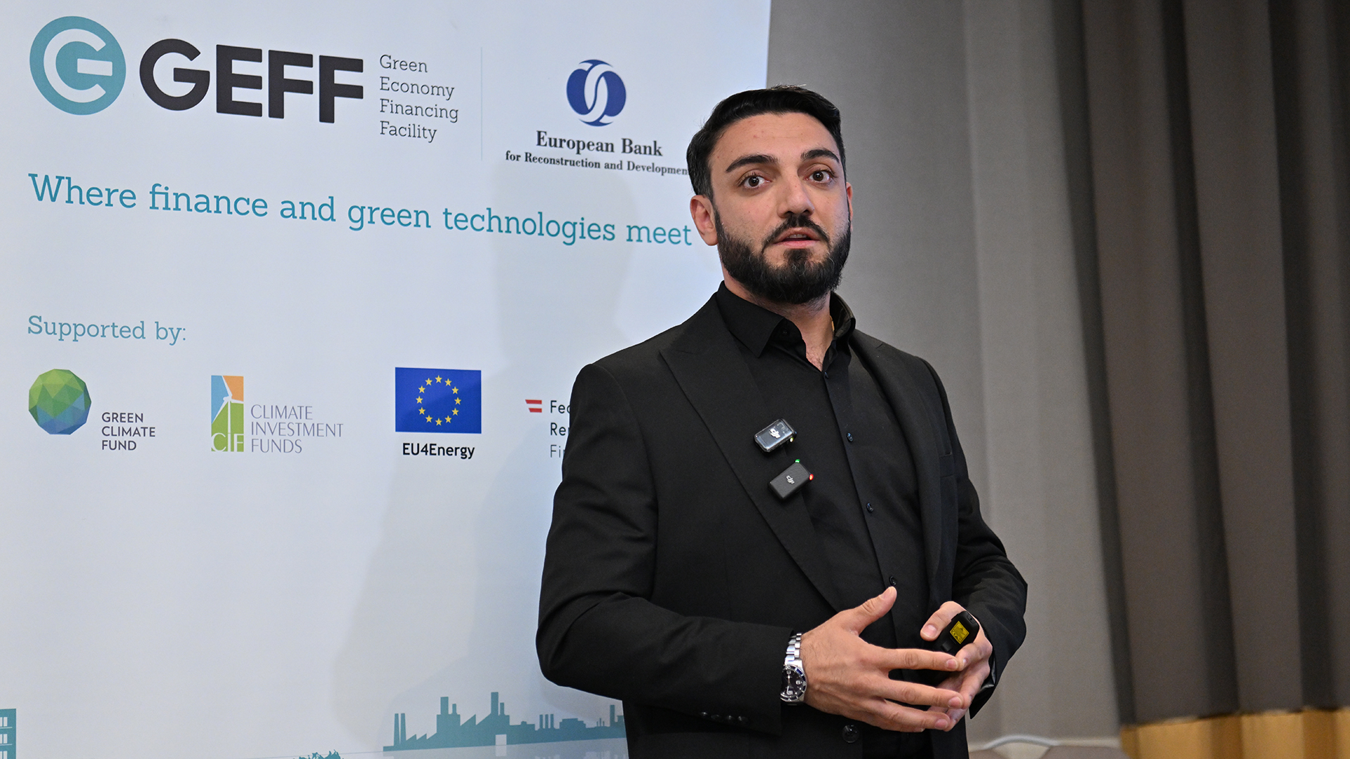 Հաջողության փորձը ներկայացրեց նաև «Եվրոէներ գրուպ» ՍՊԸ տնօրեն Դավիթ Մաթևոսյանը՝ պատմելով ընկերության գործունեության, GEFF ծրագրի առավելությունների, կանաչ ֆինանսավորման հասանելիության ընդլայնման և ծրագրի խրախուսման հստակ մեխանիզմների մասին։
