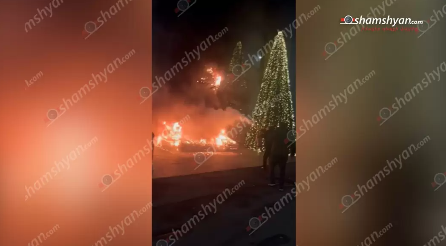 Երևանում այրվել է «Վեգա»-ի մոտ տեղադրված Ձմեռ պապը. քաղաքացու շնորհիվ կրակը տոնածառին չի հասել