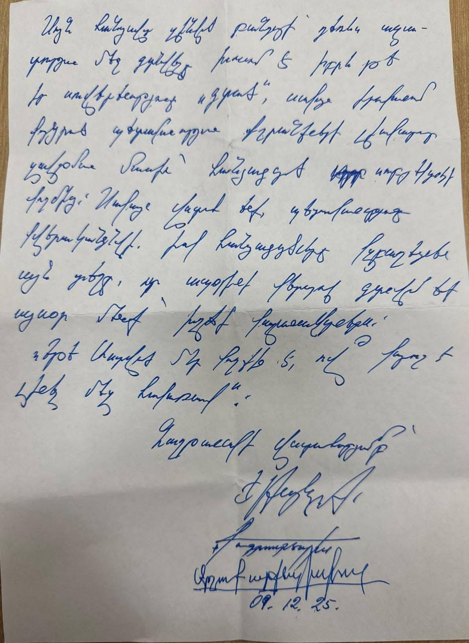 Միքայել, Բագրատ և Արշակ սրբազանների նամակն ԱԱԾ մեկուսարանից.