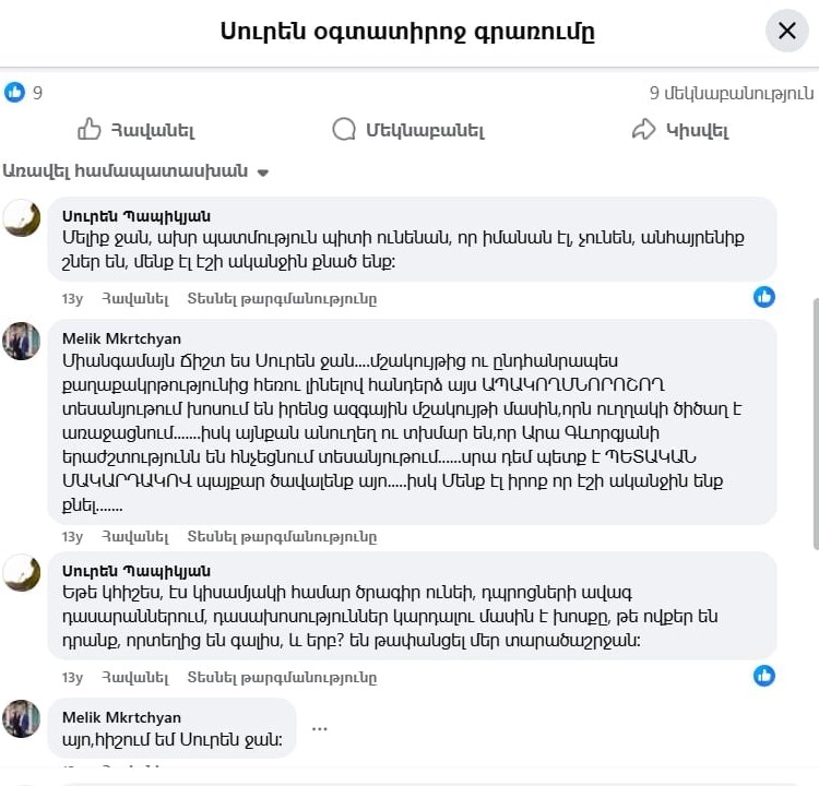 Ավելին, ուսումնասիրելով Սուրեն Պապիկյանի ոչ պաշտոնական ֆեյսբուքյան էջը, մենք ուրախությամբ պարզել ենք, որ դպրոցների ավագ դասարաններում (2010-2016թթ. աշխատել է պատմության ուսուցիչ Երևանի թիվ 54 ավագ դպրոցում, 2011-2018թթ. դասավանդել է «Քվանտ» վարժարանում) նա որպես պատմաբան՝ ճիշտ շեշտադրումներով է ներկայացրել, թե ովքեր են ադրբեջանցիները, կամ, ինչպես ինքն է որակել՝ կովկասյան թաթարները, ինչպես են ներթափանցել մեր տարածաշրջան: