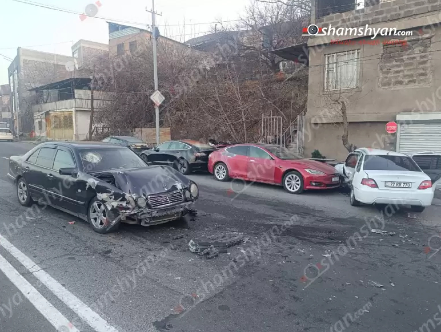 Այսօր՝ դեկտեմբերի 24-ին, ավտովթար է տեղի ունեցել Երևանում։ Ժամը 08:00-ի սահմաններում Թբիլիսյան խճուղի 14/2 հասցեի մոտ բախվել են «Tesla», «Mercedes» և «Daewoo» մակնիշի ավտոմեքենաները։ Այս մասին հայտնում է Shamshyan.com-ը: