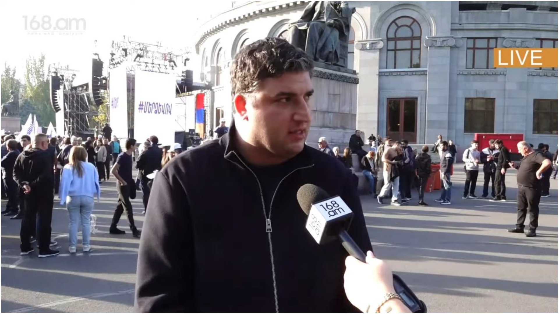 «Ես այսօր այստեղ եմ եկել ոչ միայն Սամվել Կարապետյանի, այլև սրբազանների համար՝ եկեղեցին մեր սրբությունն է։ Երկրորդը՝ այն քաղբանտարկյալների համար, որոնք կան»,- Ազատության հրապարակում «Մեր ձևով» շարժման հանրահավաքի ժամանակ 168.am-ի հետ զրույցում նշեց հավաքի մասնակից քաղաքացիներից մեկը։