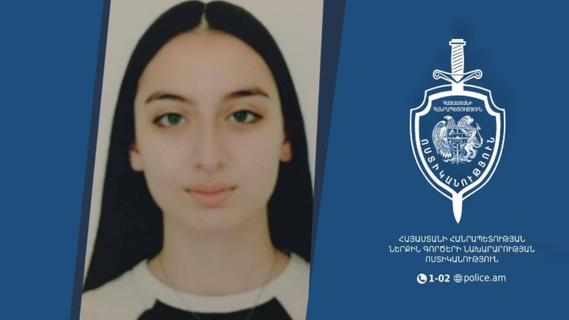Լաուրա Խնկիկյանի գտնվելու վայրի մասին տեղեկություն ունեցողներին խնդրում ենք դիմել Ոստիկանության մոտակա բաժին կամ զանգահարել 1-02։