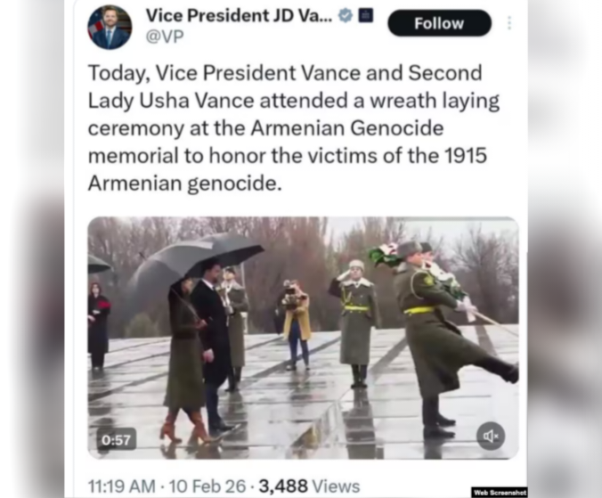 Վենսի աշխատակազմը պարզաբանել է՝ ինչո՞ւ է ԱՄՆ փոխնախագահի՝ Ծիծեռնակաբերդ այցի մասին գրառումը հեռացվել. «Ազատություն»