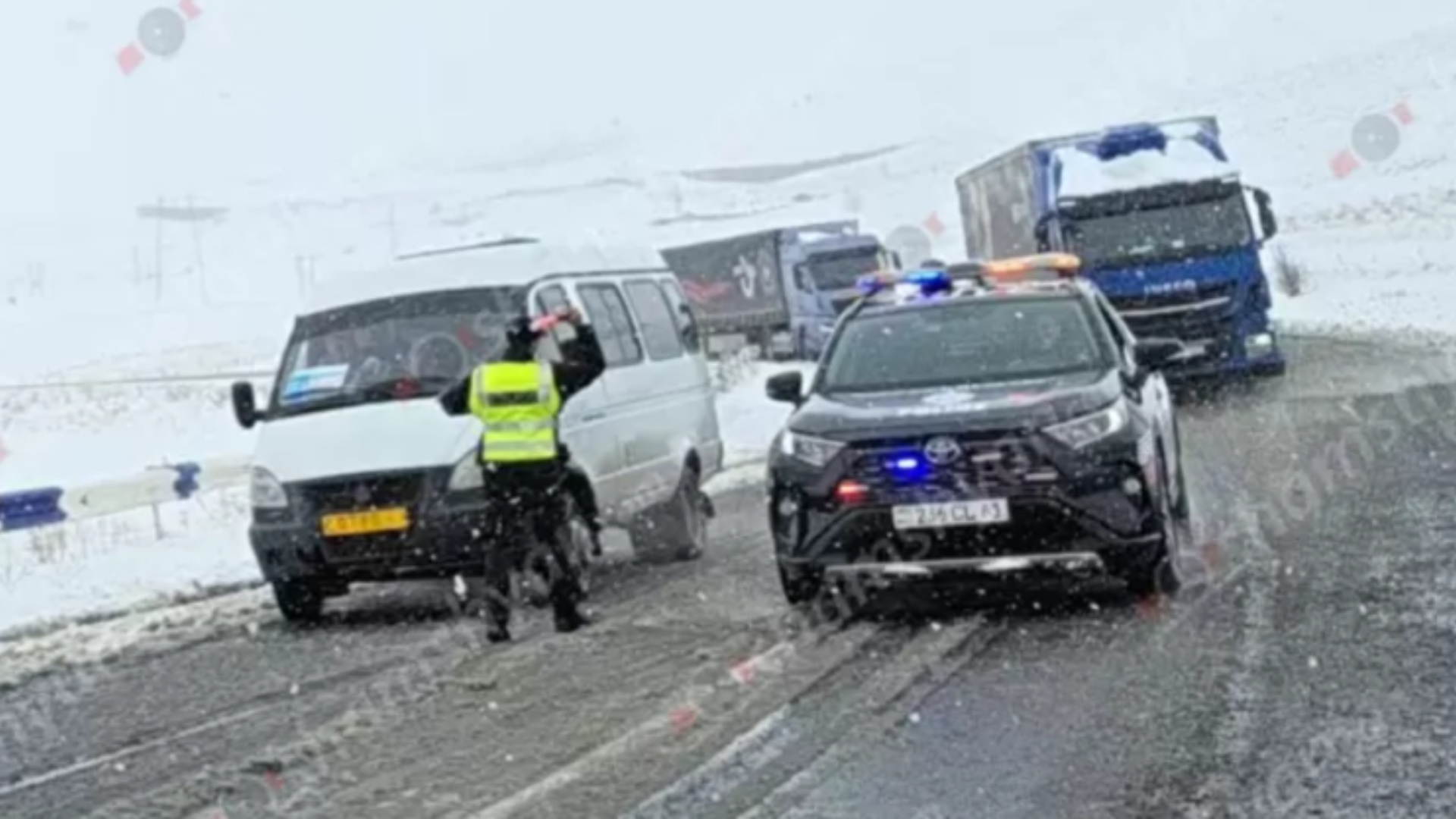 Շիրակի մարզում 100-ից ավելի բեռնատար, բքի պատճառով, չեն կարողանում Ջաջուռի ոլորաններով անցնել