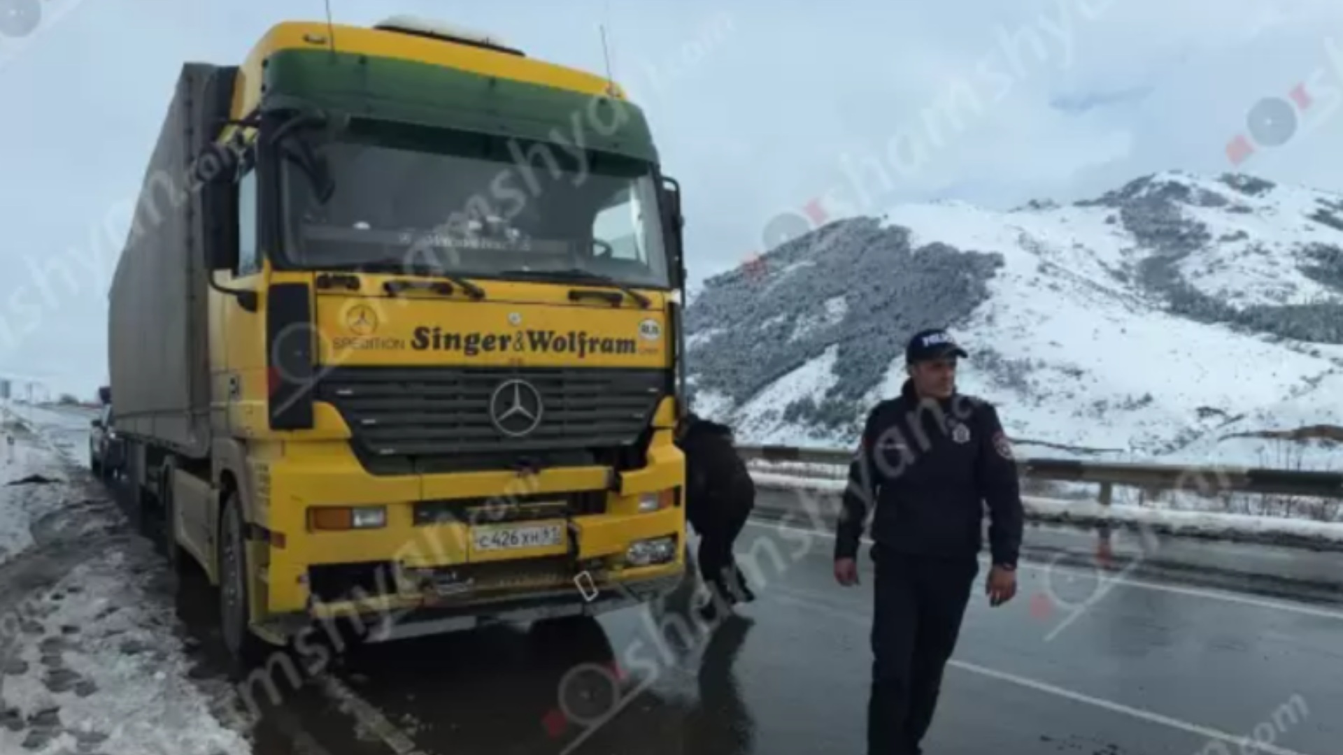Սպիտակում «Mercedes» բեռնատարը բախվել է երկաթե արգելապատնեշներին