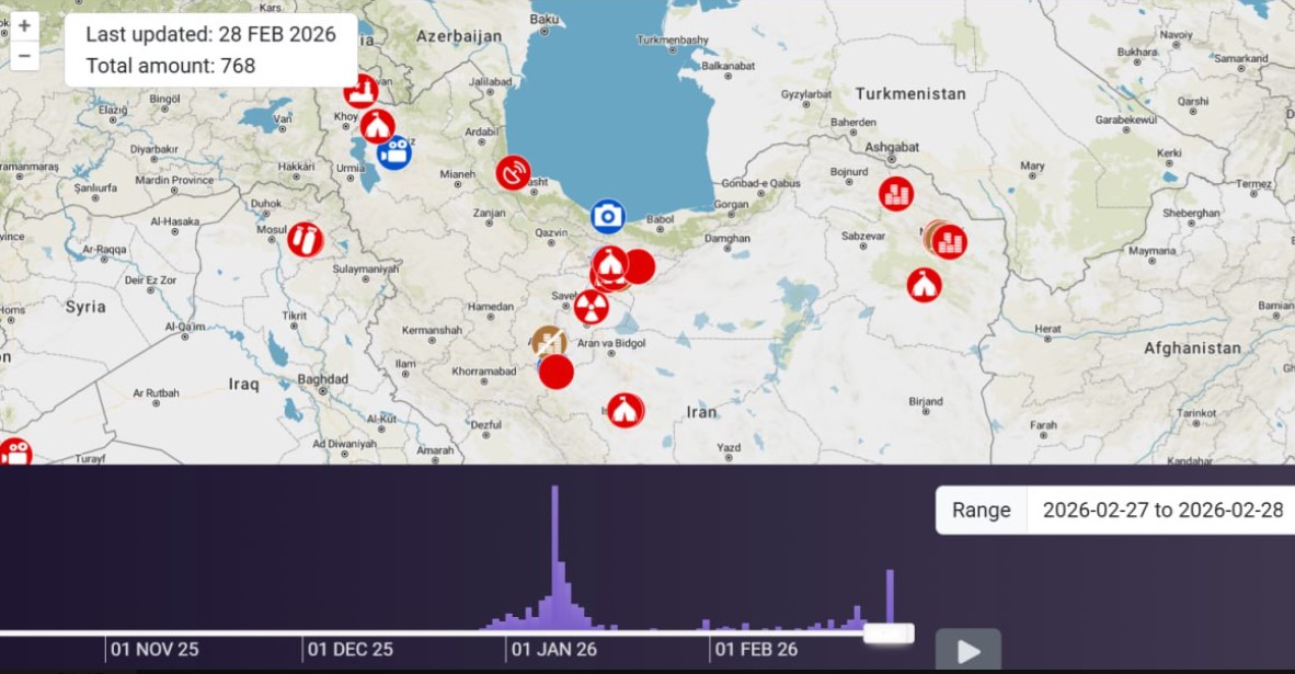 «Իրանն այսօր» թելեգրամյան ալիքը գրում է. «Բաց տվյալների հետախուզությամբ զբաղվող հարթակներից մեկն այս պահի դրությամբ Իրանի տարբեր վայրերում հաստատել է 768 տեղադիրք, որոնք դարձել են իսրայելա-ամերիկյան հարձակման թիրախ»։