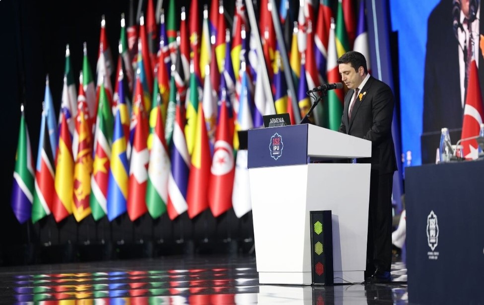 Ինձ համար մեծ պատիվ է ընդունել Թուրքիայի հրավերը և Հայաստանի Հանրապետության Ազգային ժողովի անունից հանդես գալ Միջխորհրդարանական միության 152-րդ վեհաժողովում: Կցանկանայի նշել, որ քննարկվող՝ «Հույսի սերմանում, խաղաղության ապահովում և արդարության երաշխավորում ապագա սերունդների համար» թեմայի կարևորությունը դժվար է գերագնահատել: Թույլ տվեք ասել մի ակնհայտ ճշմարտություն. ծաղկող ներկան և ապագան կառուցվում են հույսի, խաղաղության և արդարության հիմքերի վրա: