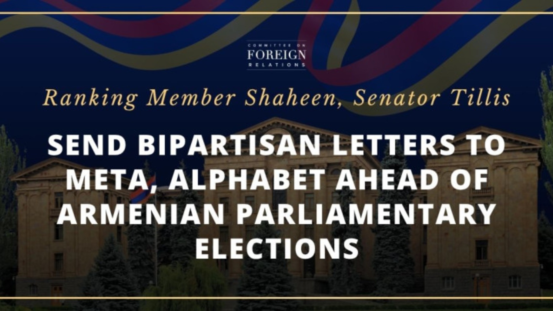 Անցյալ շաբաթ ԱՄՆ սենատորներ Ջին Շահինը և Թոմ Թիլիսը, նամակներ են հղել Meta և Alphabet ընկերություններին՝ կոչ անելով բավարար ռեսուրսներ տրամադրել 2026 թվականի հունիսին կայանալիք Հայաստանի խորհրդարանական ընտրություններին ընդառաջ ռուսական ապատեղեկատվությունը կանխելու համար: Այս մասին հայտնում է ԱՄՆ սենատի արտաքին հարաբերությունների հանձնաժողովի պաշտոնակն կայքը: