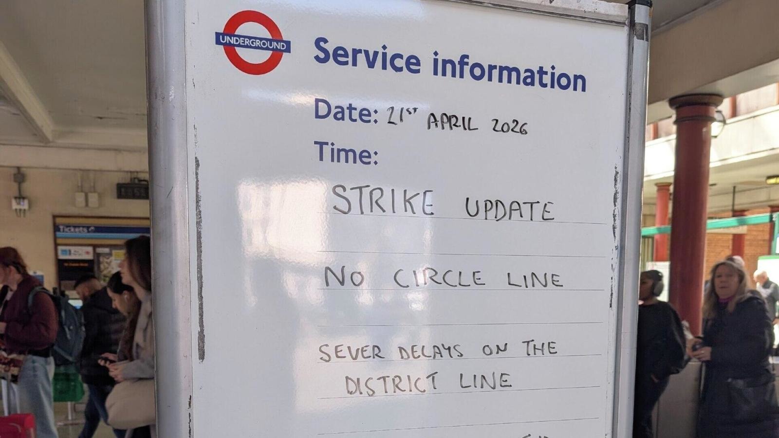 Երկաթուղային, ծովային և տրանսպորտային աշխատողների ազգային արհմիությունը (RMT) գործադուլի մասին հայտարարել էր մարտին։ Աշխատողները դժգոհ են աշխատանքային պայմաններից և ծանր հերթափոխային գրաֆիկից։ Առաջին գործադուլը պետք է անցկացվեր մարտի վերջին, բայց այն չեղարկվել էր մետրոպոլիտենի ղեկավարության հետ բանակցությունների ֆոնին։