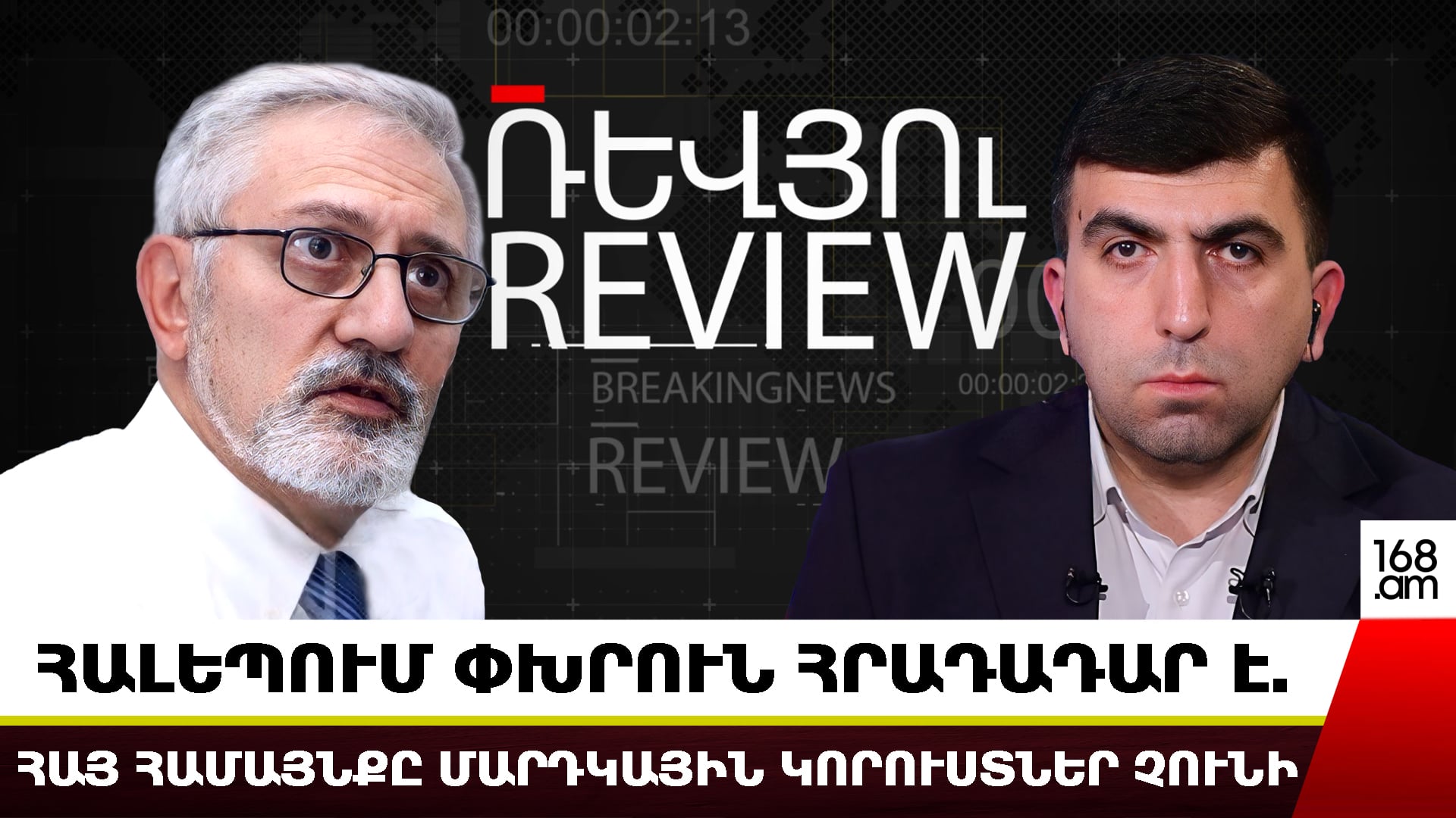 Սիրիայի հայոց ազգային առաջնորդարանի ազգային վարչության ատենապետ Ժիրայր Ռեիսյանը 168TV-ի «Ռեվյու» հաղորդաշարի եթերում խոսել է Հալեպում Սիրիայի կառավարական ուժերի և Սիրիայի դեմոկրատական ուժերի քրդական ներքին անվտանգության ստորաբաժանումների միջև տեղի ունեցած բախումների և հայ համայնքի վիճակի մասին։