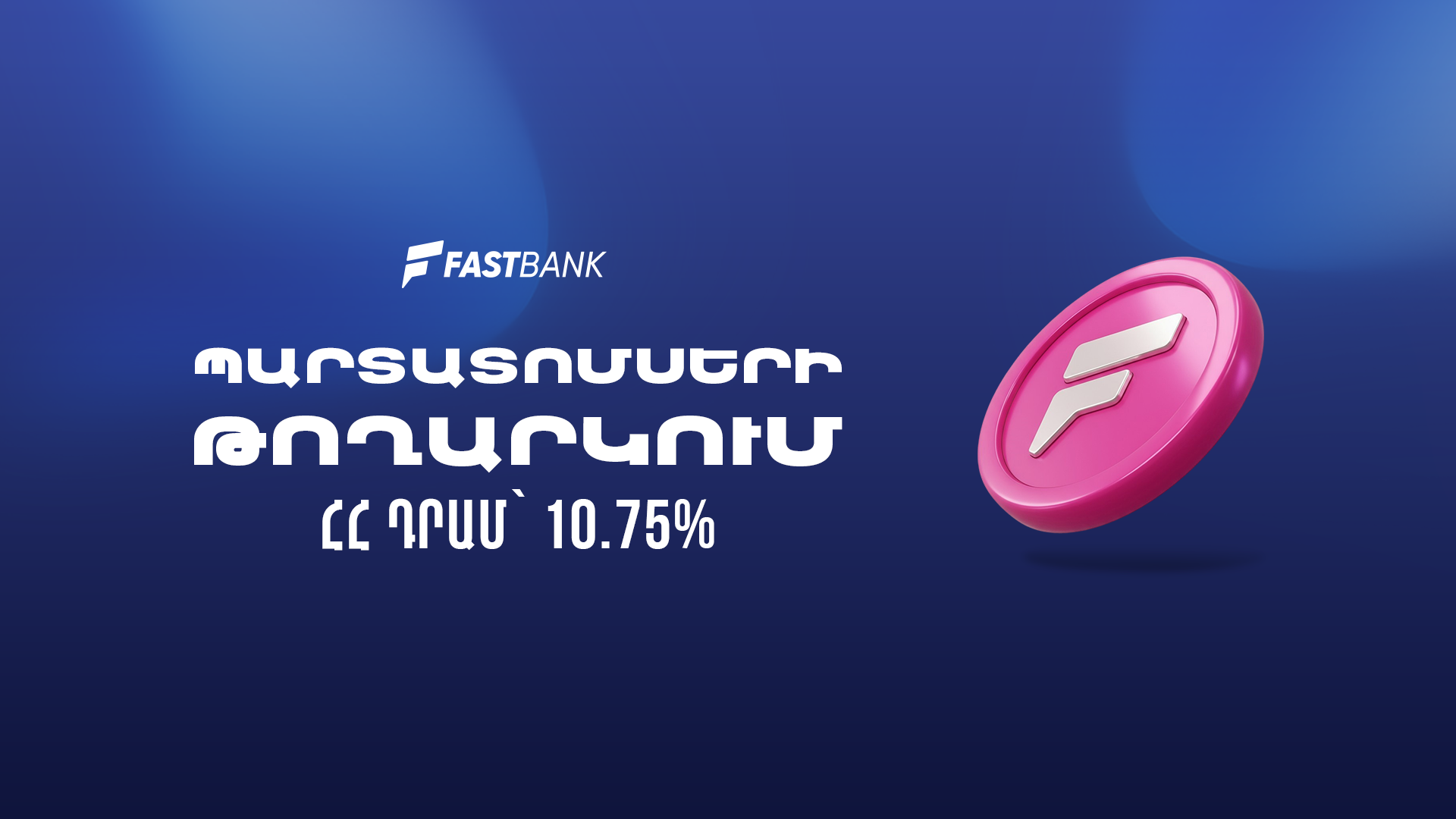 Ֆասթ Բանկը թողարկել է 12 մլրդ ՀՀ դրամ ընդհանուր ծավալով դրամային անվանական արժեկտրոնային պարտատոմսեր։ Պարտատոմսերը տեղաբաշխվում են սույն թվականի նոյեմբերի 10-ից մինչև 2026 թվականի մարտի 10-ը 100,000 ՀՀ դրամի անվանական արժեքով, 10.75% տարեկան տոկոսային եկամտաբերությամբ։